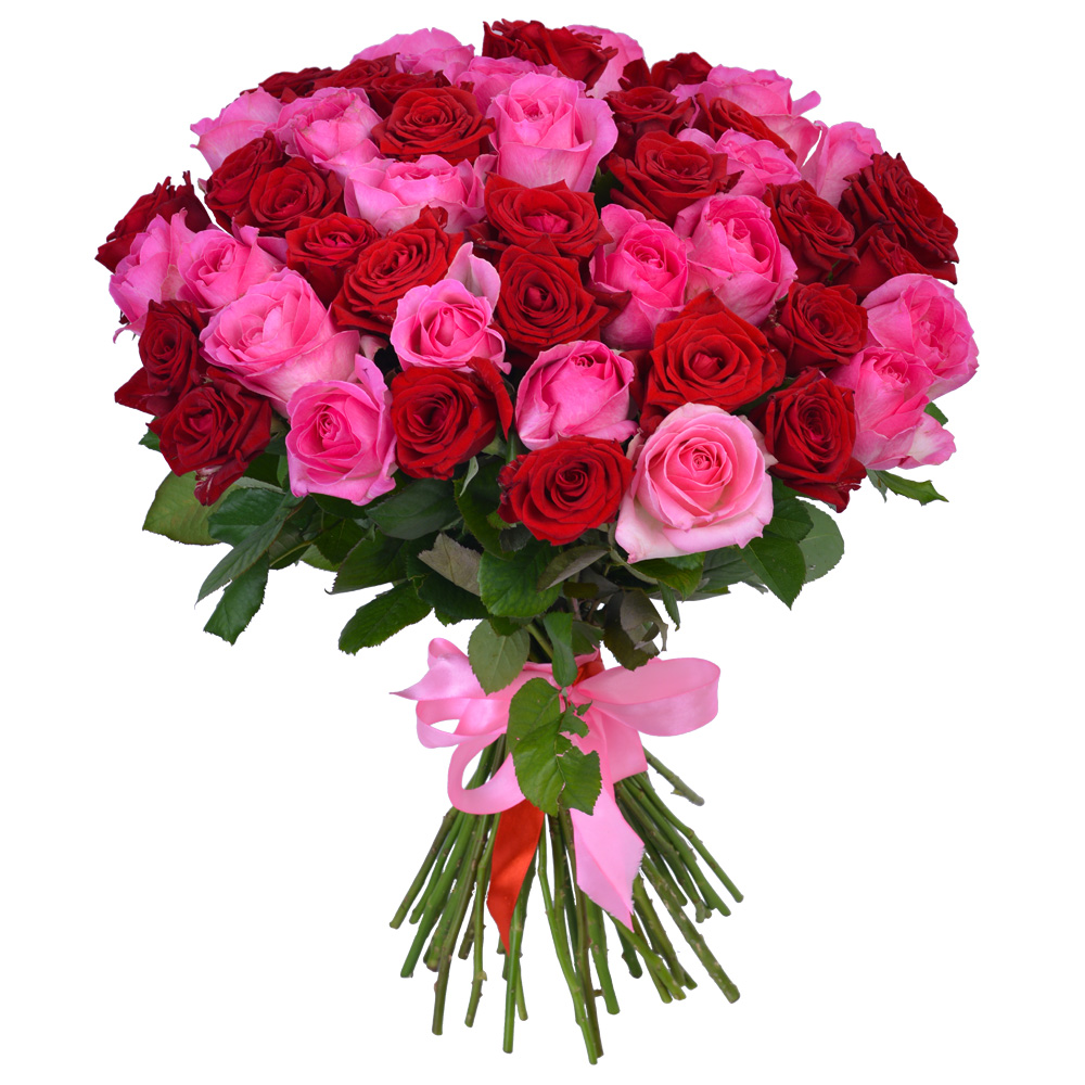 Букет из 51 разноцветной розы 50 см под ленту