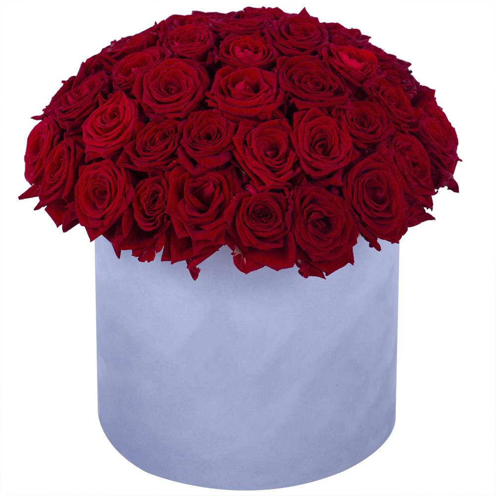 Букет из 51 красной розы premium в серой бархатной шляпной коробке