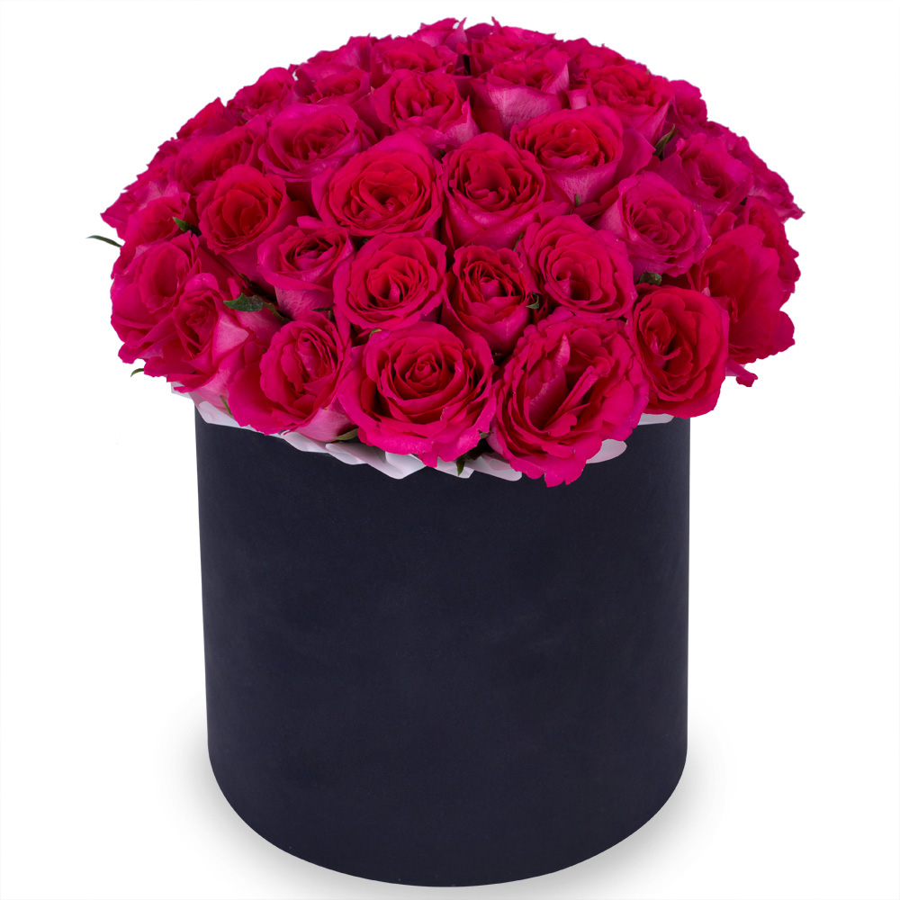 51 малиновая роза в черной шляпной коробке