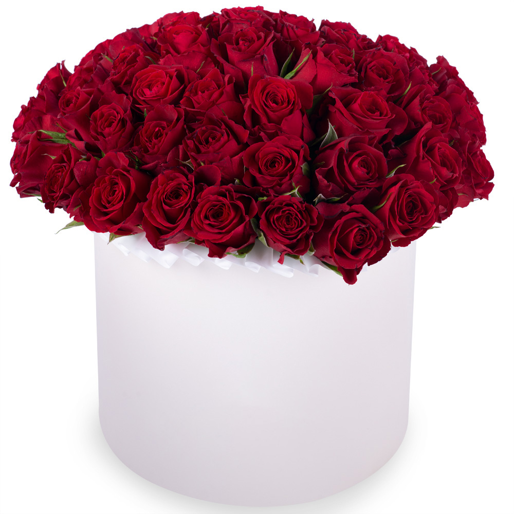 51 красная роза в кремовой шляпной коробке