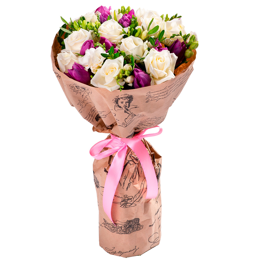 Букет из роз, тюльпанов и фрезии