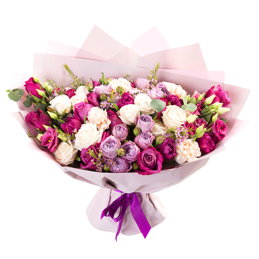 Букет из роз, гвоздик и эустом