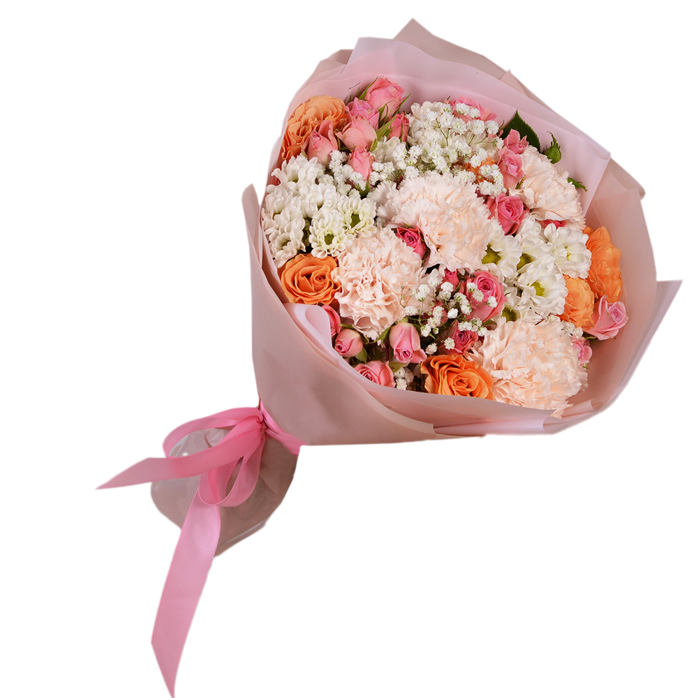Букет из гипсофил, роз и гвоздик
