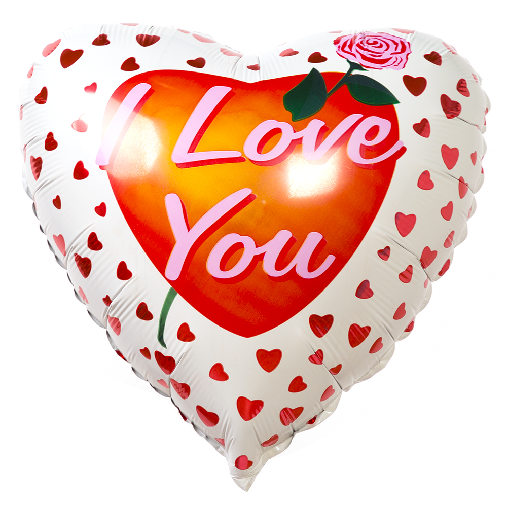 Фольгированный шар Сердце I Love you с рисунком сердечки