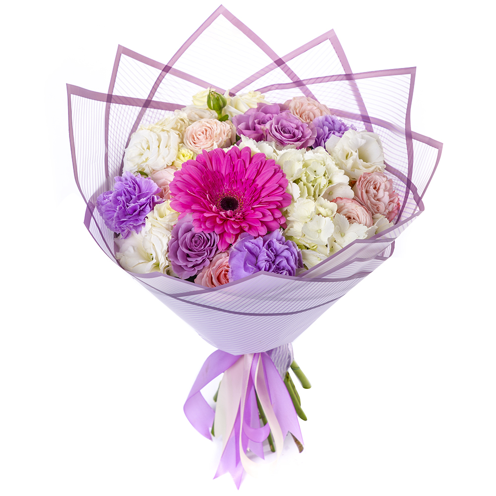 Букет из роз, диантуса и гортензии