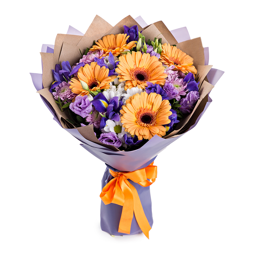 Букет из гербер, эустом и хризантем