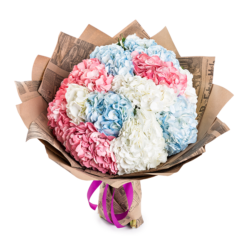 Букет из 15 разноцветных гортензий