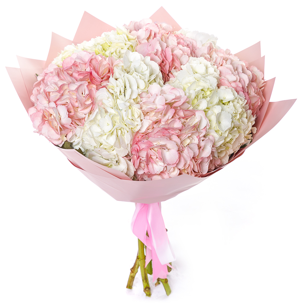 Букет из 9 разноцветных гортензий