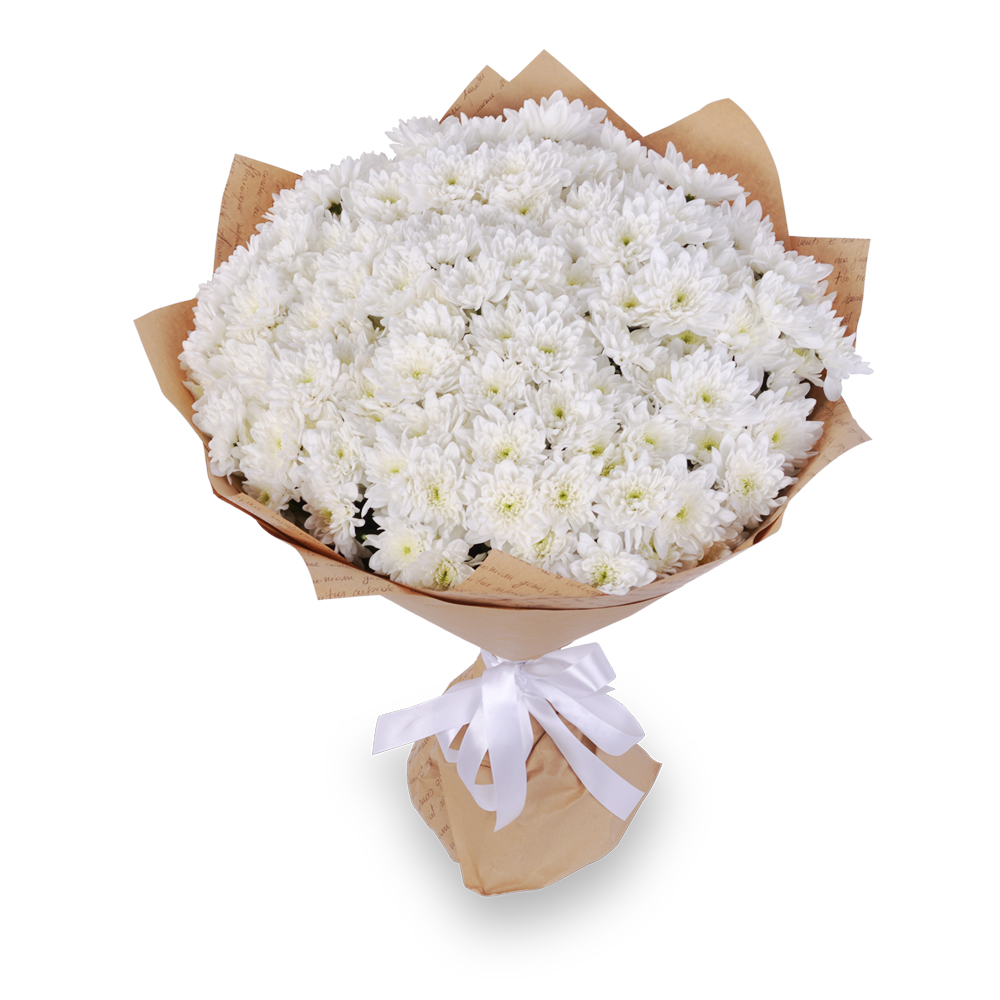 Букет из 25 белых хризантем в крафте