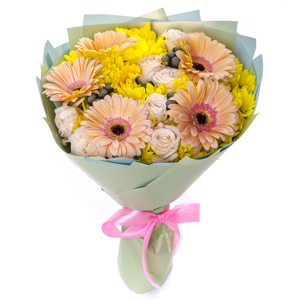 Букет из гербер, роз и хризантем