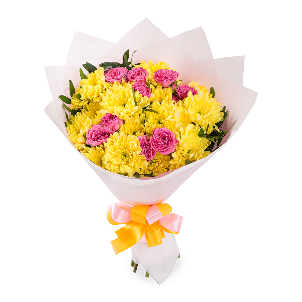 Букет из роз и хризантем в пленке