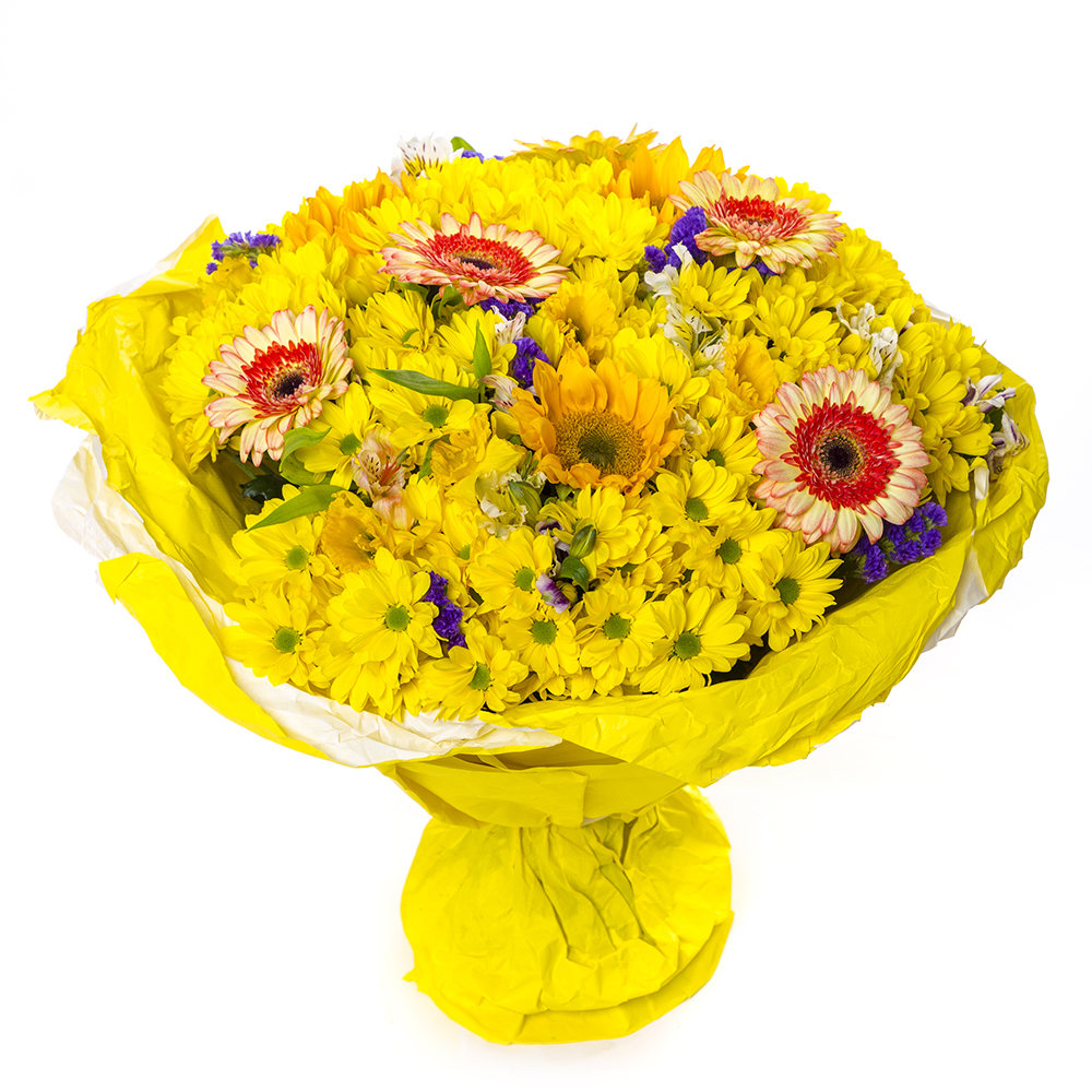 Букет из гербер, альстромерий и подсолнухов
