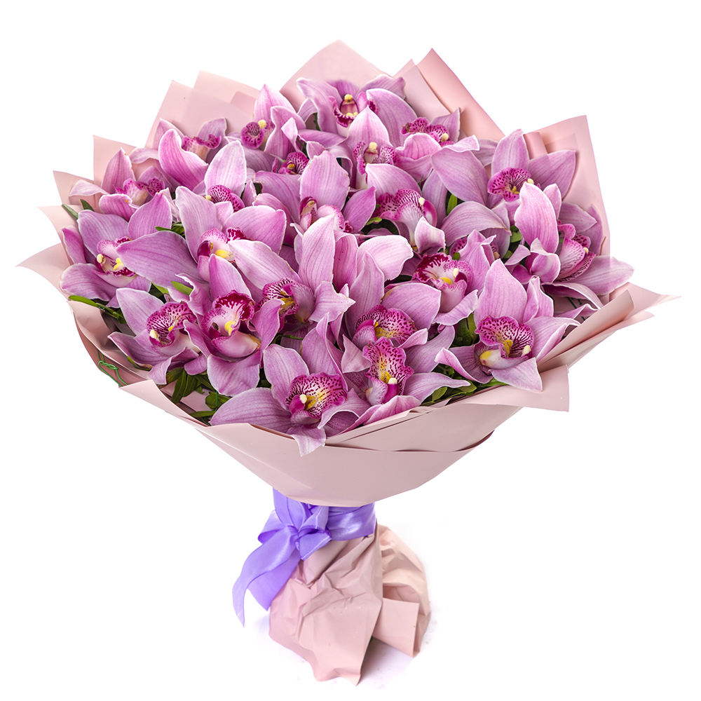 Букет из 35 фиолетовых орхидей