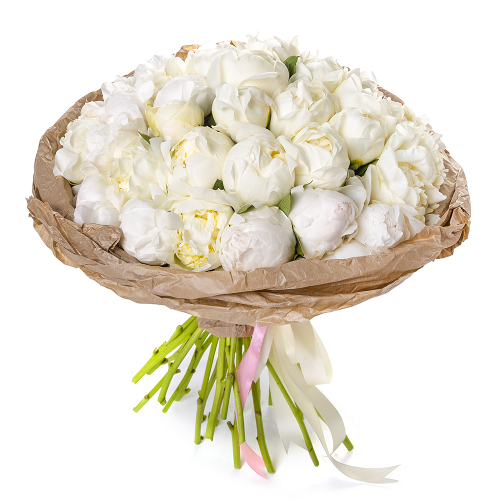 Букет из 35 белых пионов