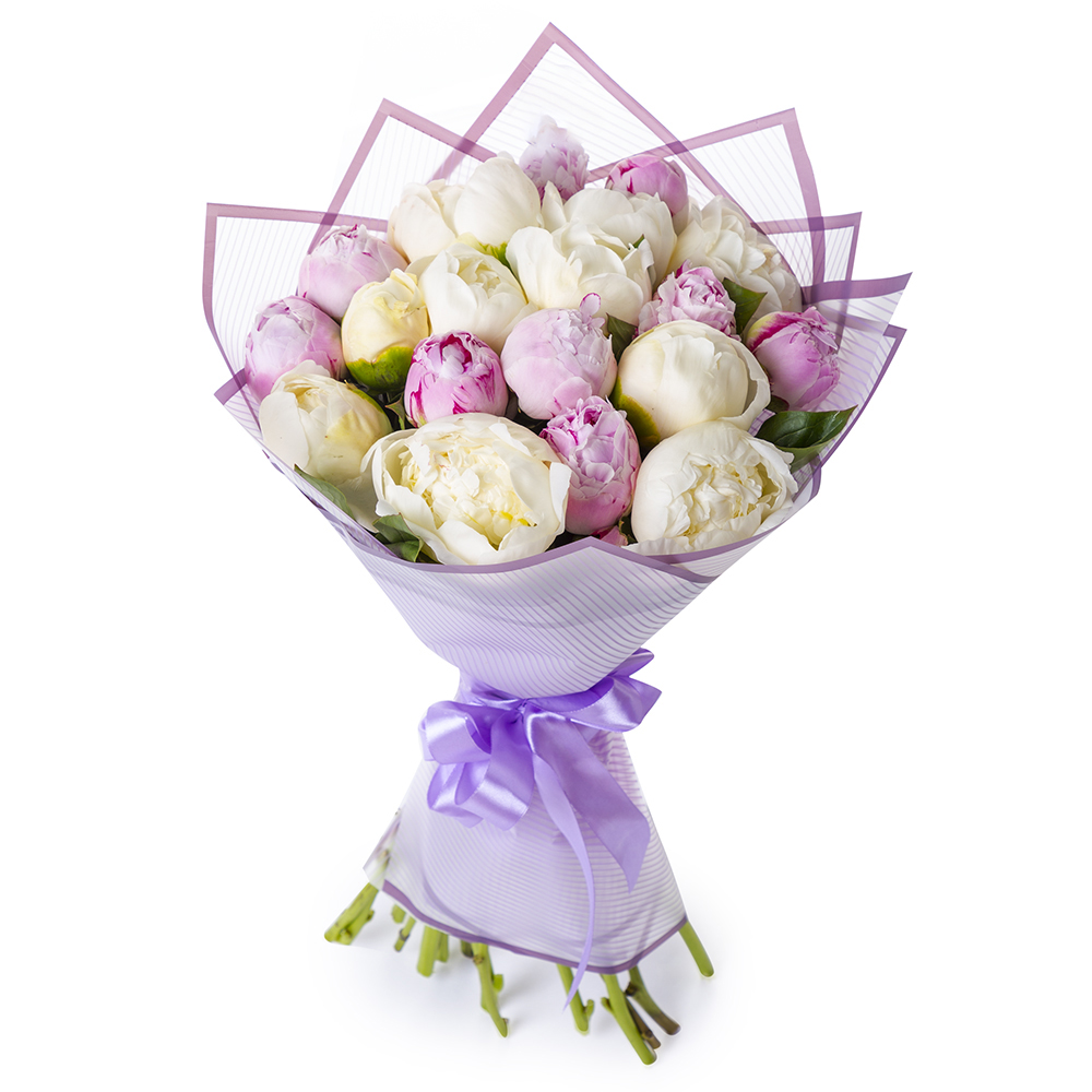 Букет из 19 разноцветных пионов