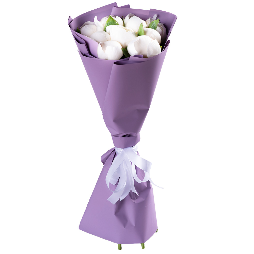 9 белых пионов