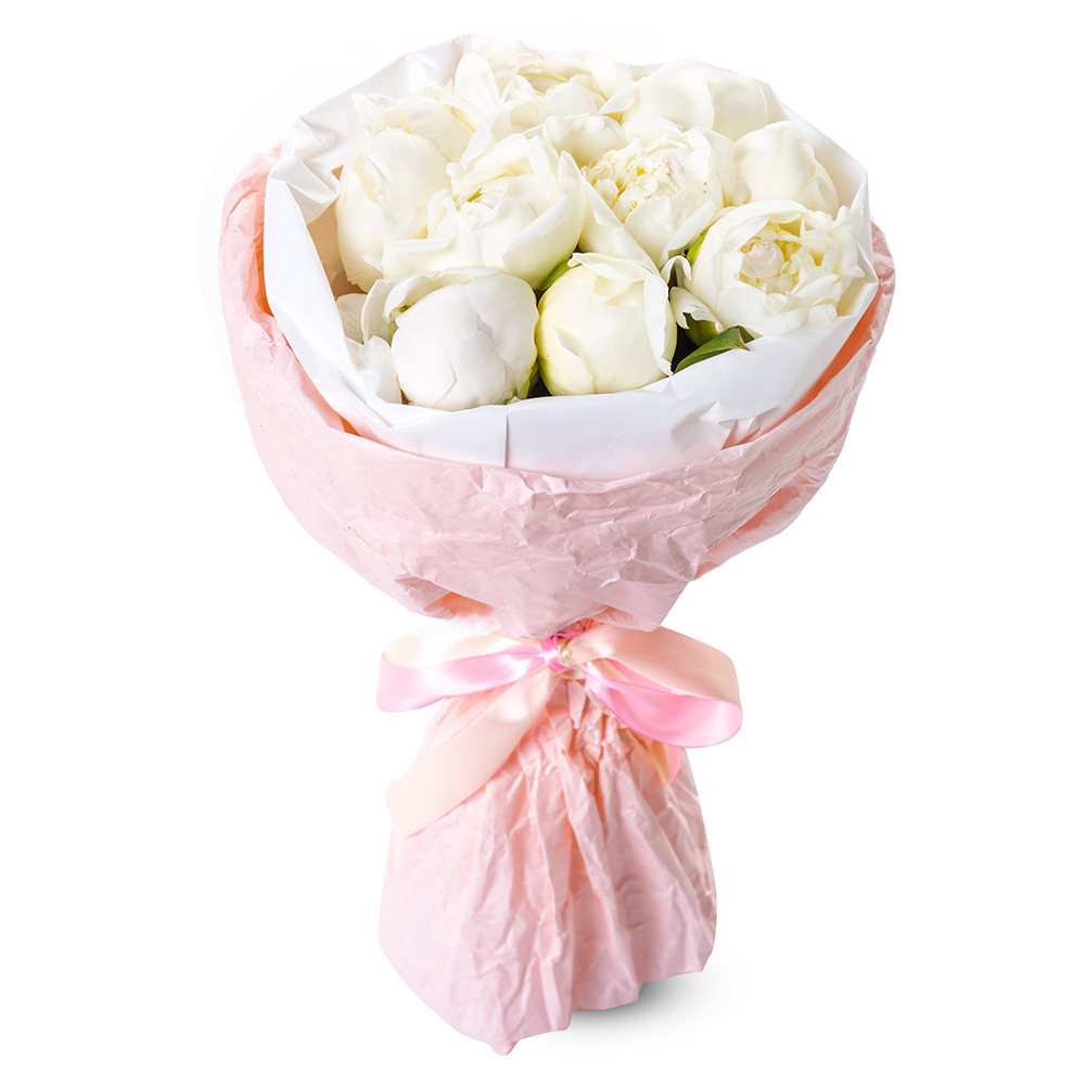 Букет из 9 белых пионов