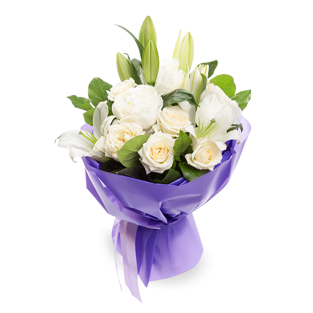 Букет из роз, пионов и лилий