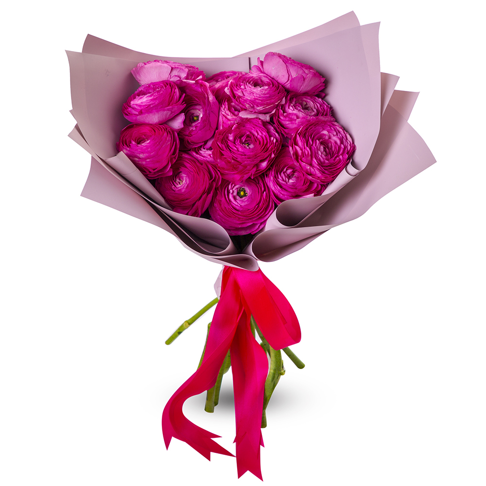 Букет из 15 малиновых ранункулюсов