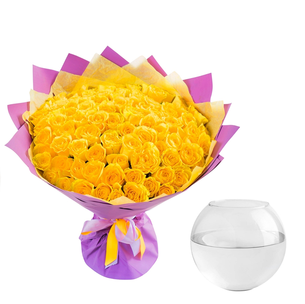 101 желтая роза - ваза в подарок!