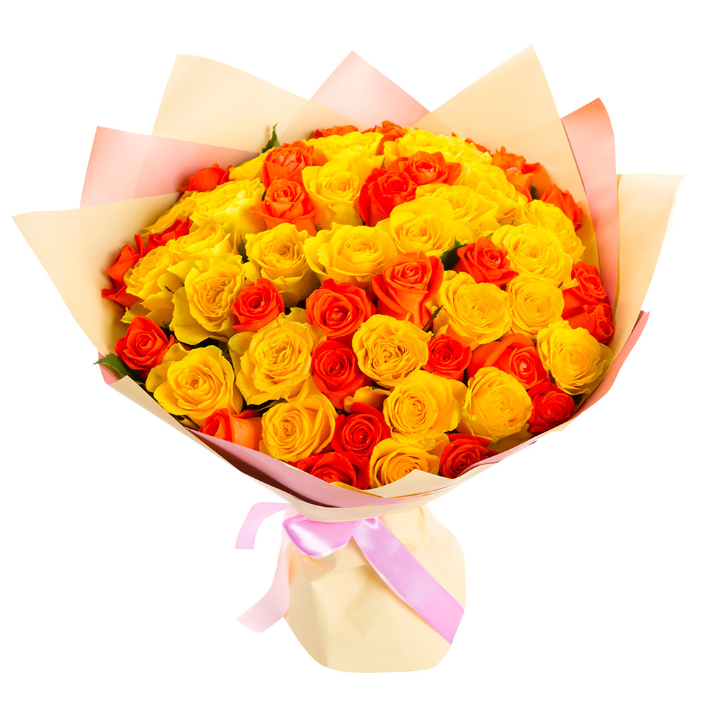 Букет из 51 желтой и оранжевой розы