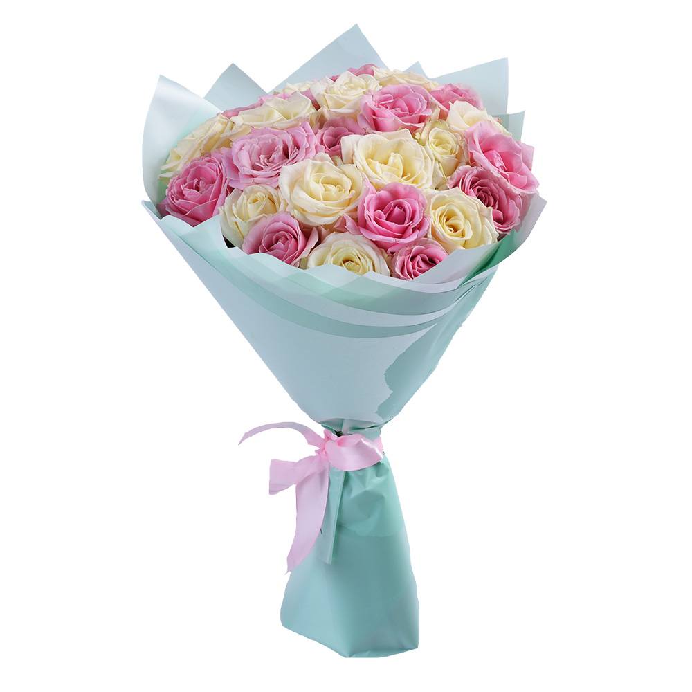 Букет из 25 белых и розовых роз 40 см