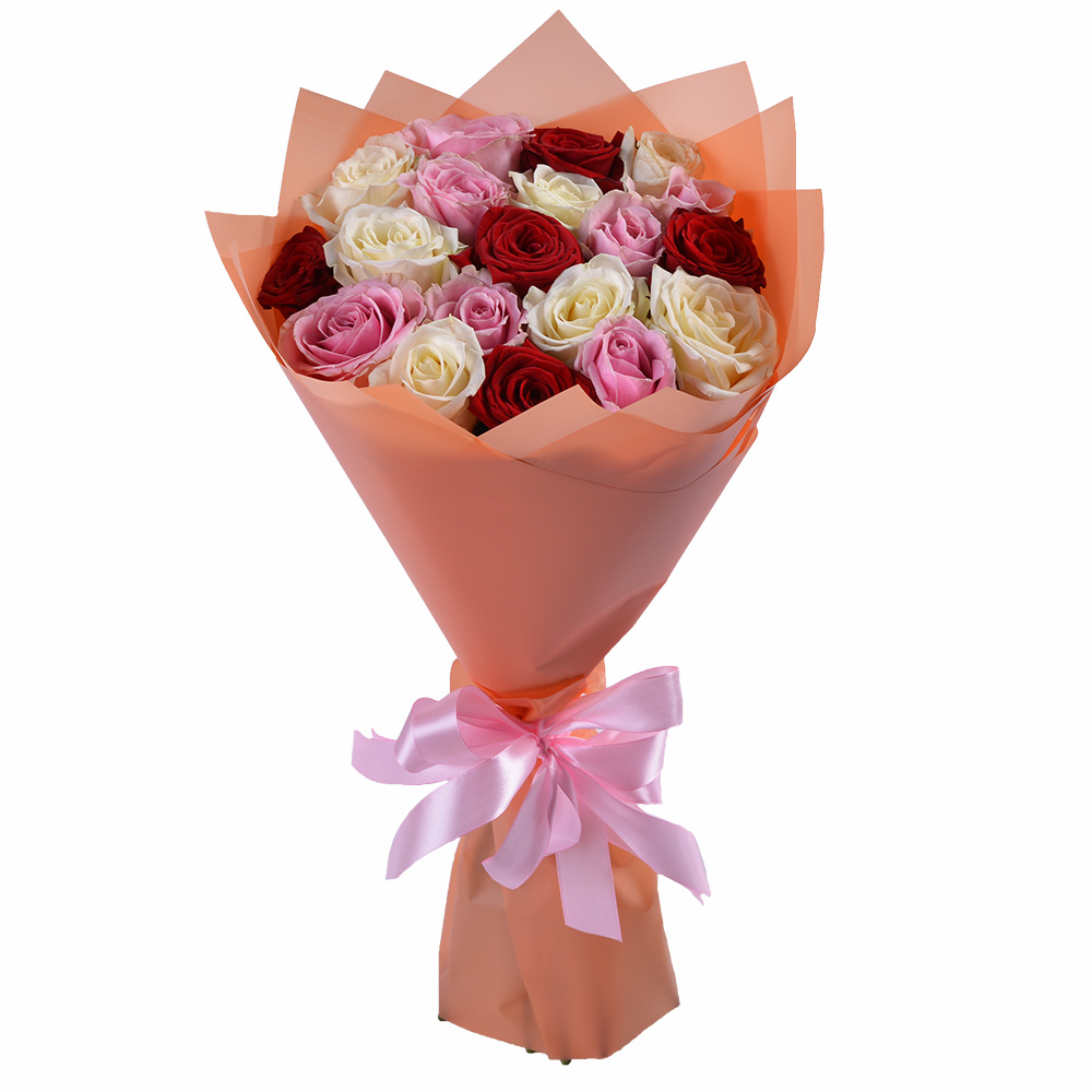 Букет из 19 разноцветных роз 50 см