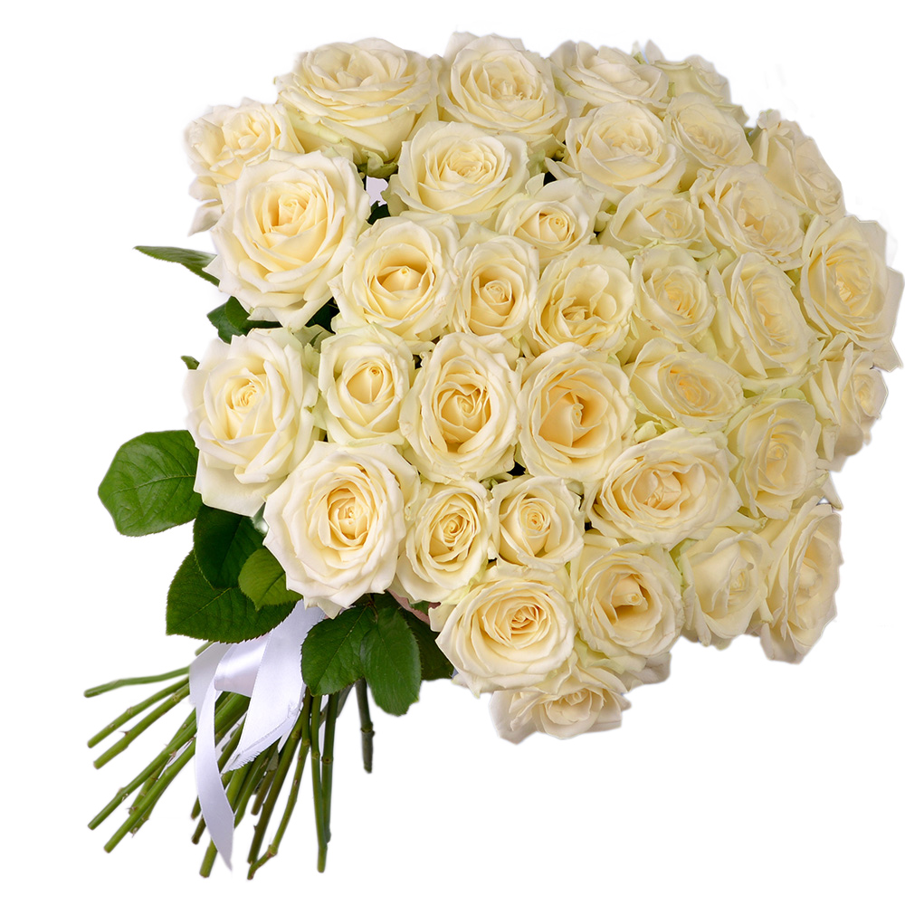 35 белых роз 50 см под ленту