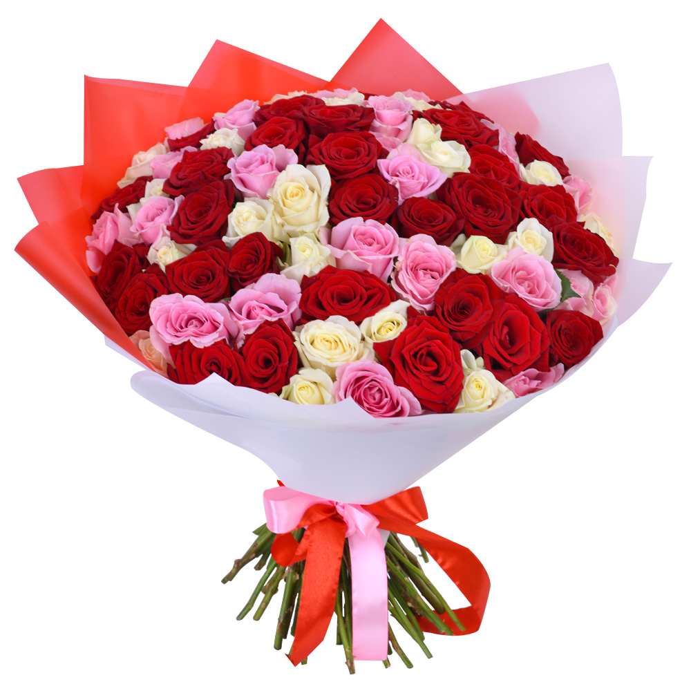 Букет из 75 разноцветных роз 40 см