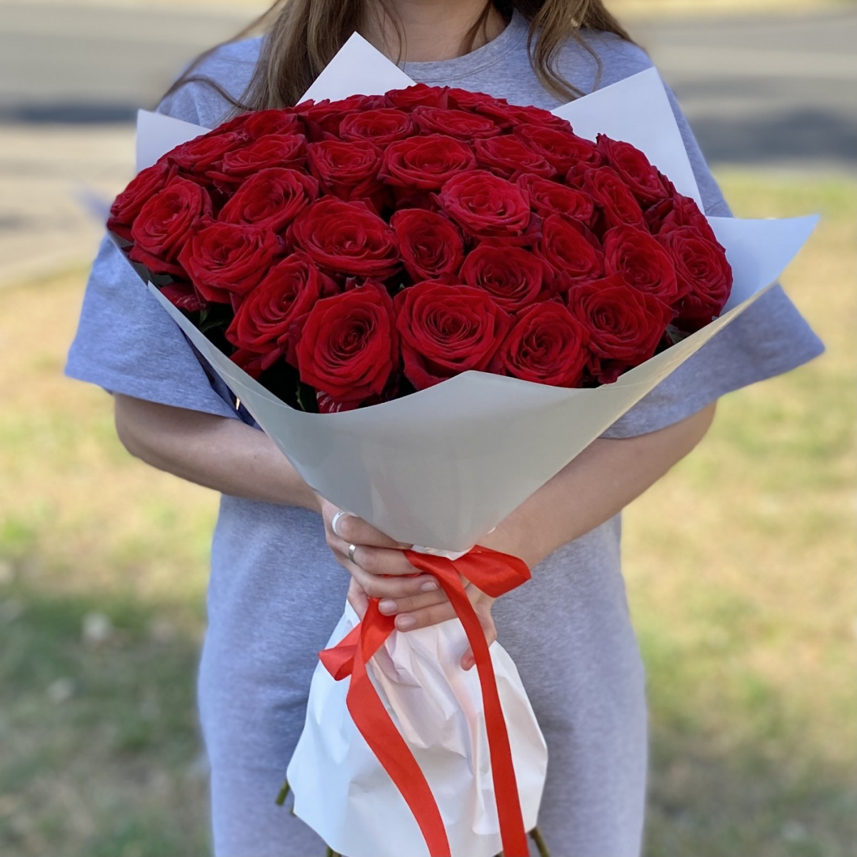 35 красных роз 50 см
