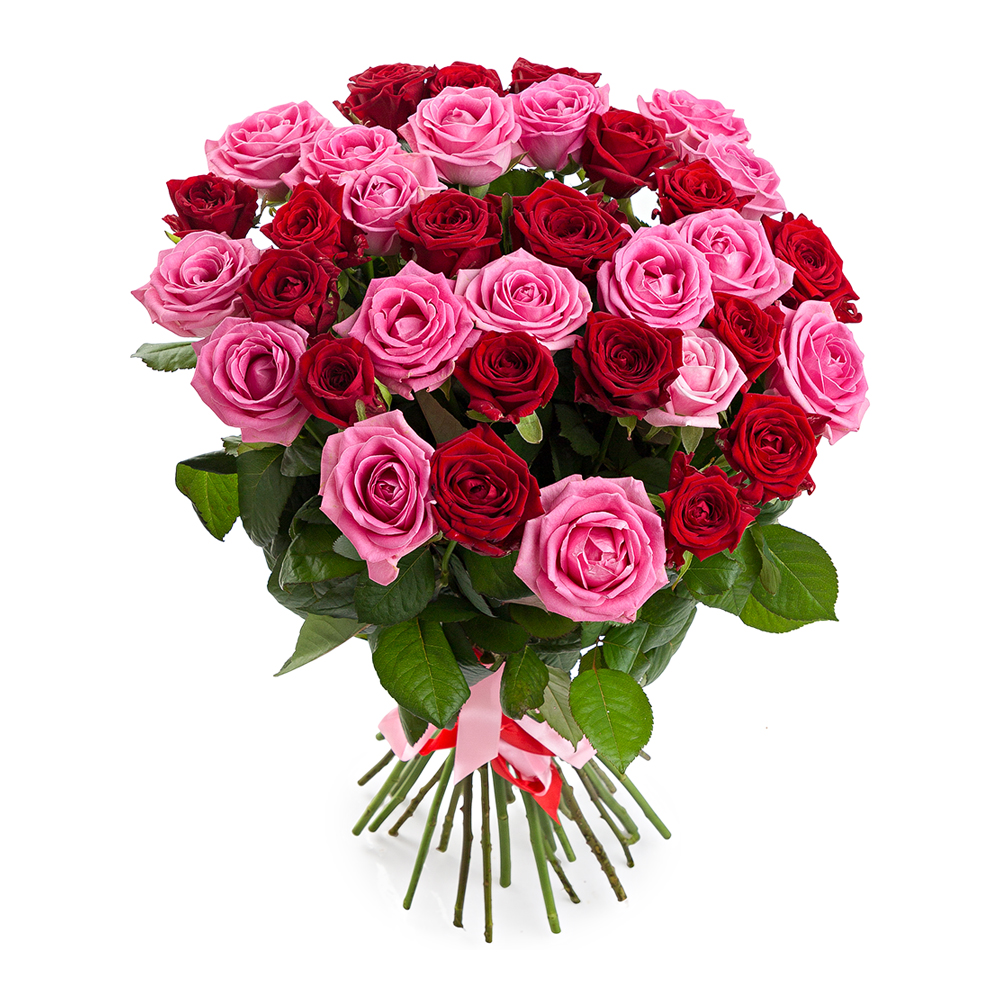 Букет из 35 разноцветных роз 60 см
