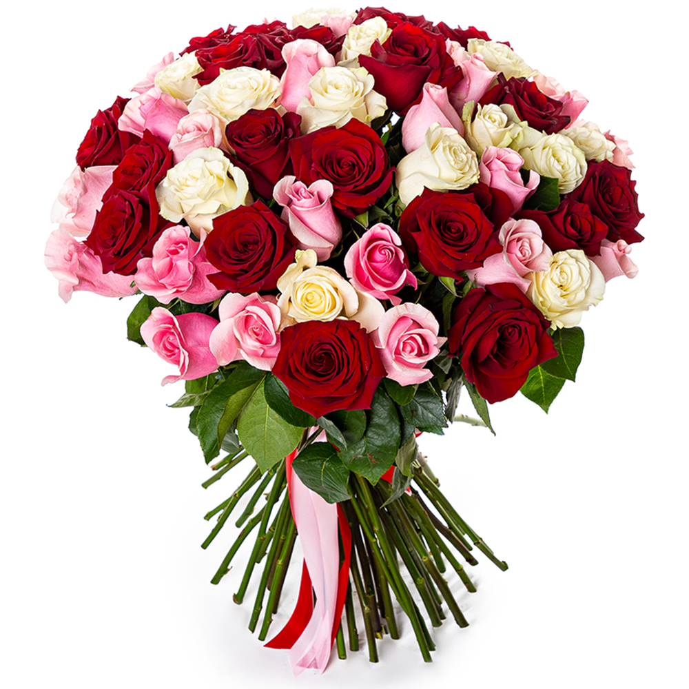 75 разноцветных роз Эквадор 70 см