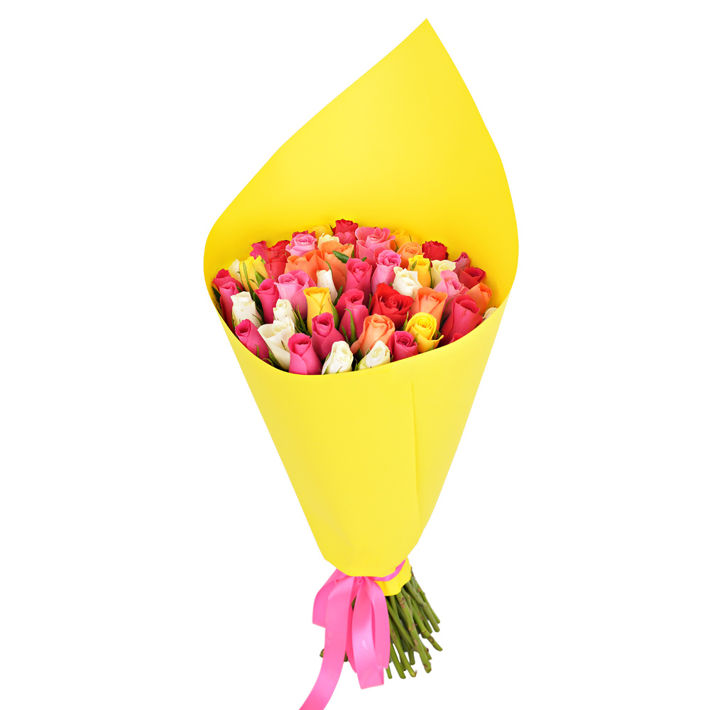Букет из 51 разноцветной розы в крафте