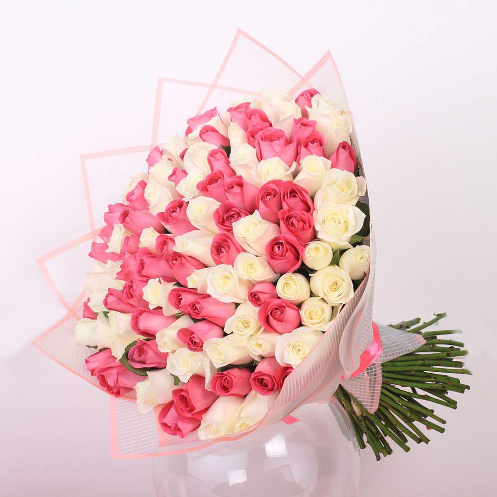 Букет из 101 розовой и белой розы