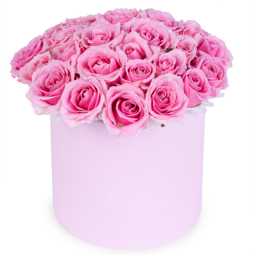 Букет из 25 розовых роз premium в розовой шляпной коробке