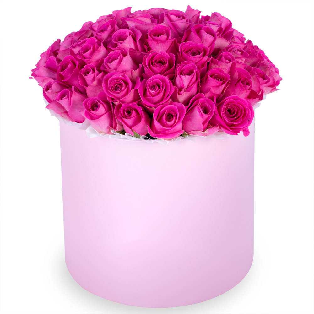 Букет из 51 розовой розы в розовой шляпной коробке