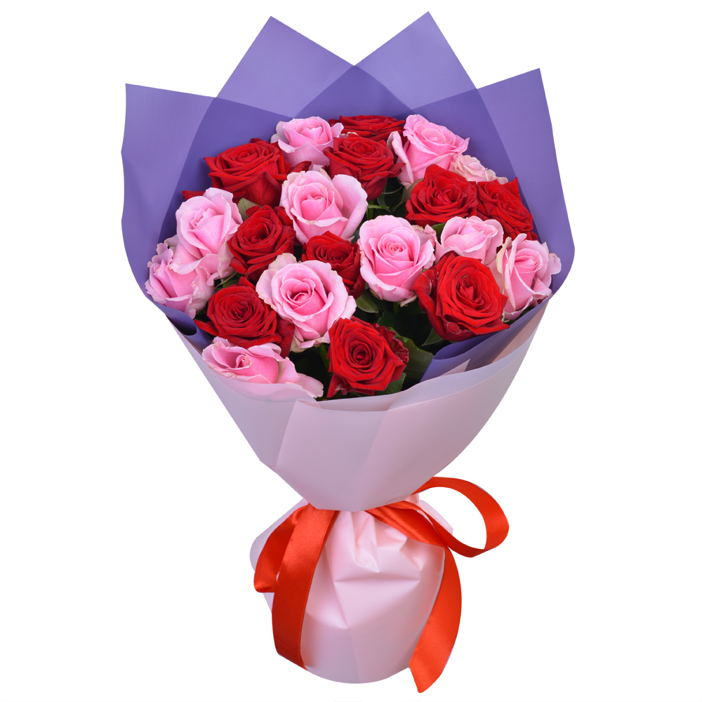 21 разноцветная роза Premium 40 см