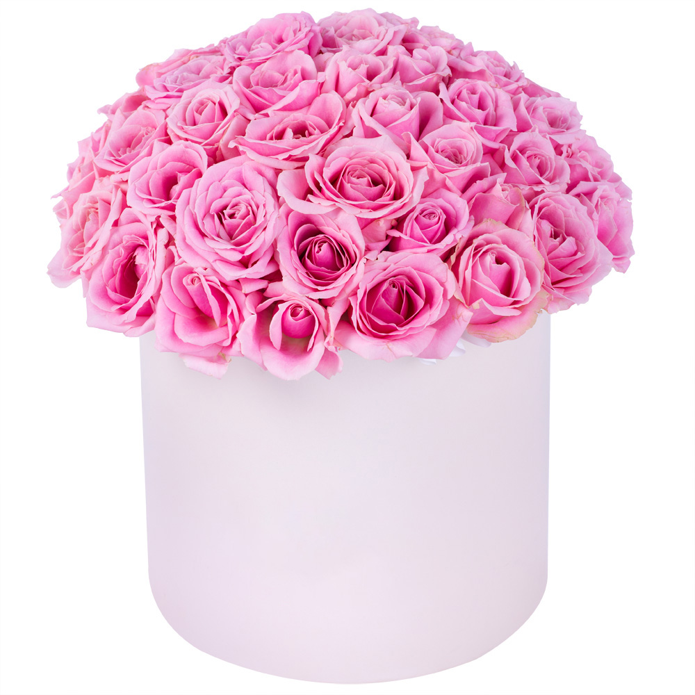 Букет из 51 розовой розы premium в кремовой шляпной коробке