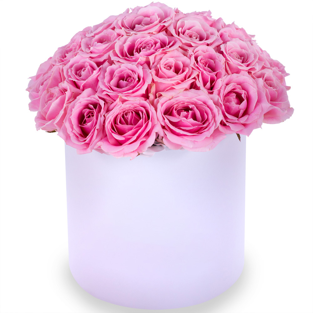 Букет из 35 розовых роз premium в белой шляпной коробке