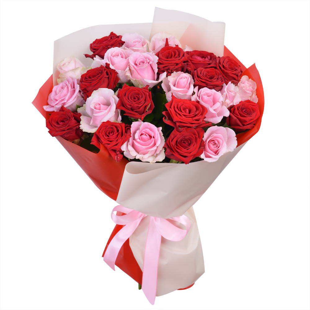 25 разноцветных роз premium 40 см