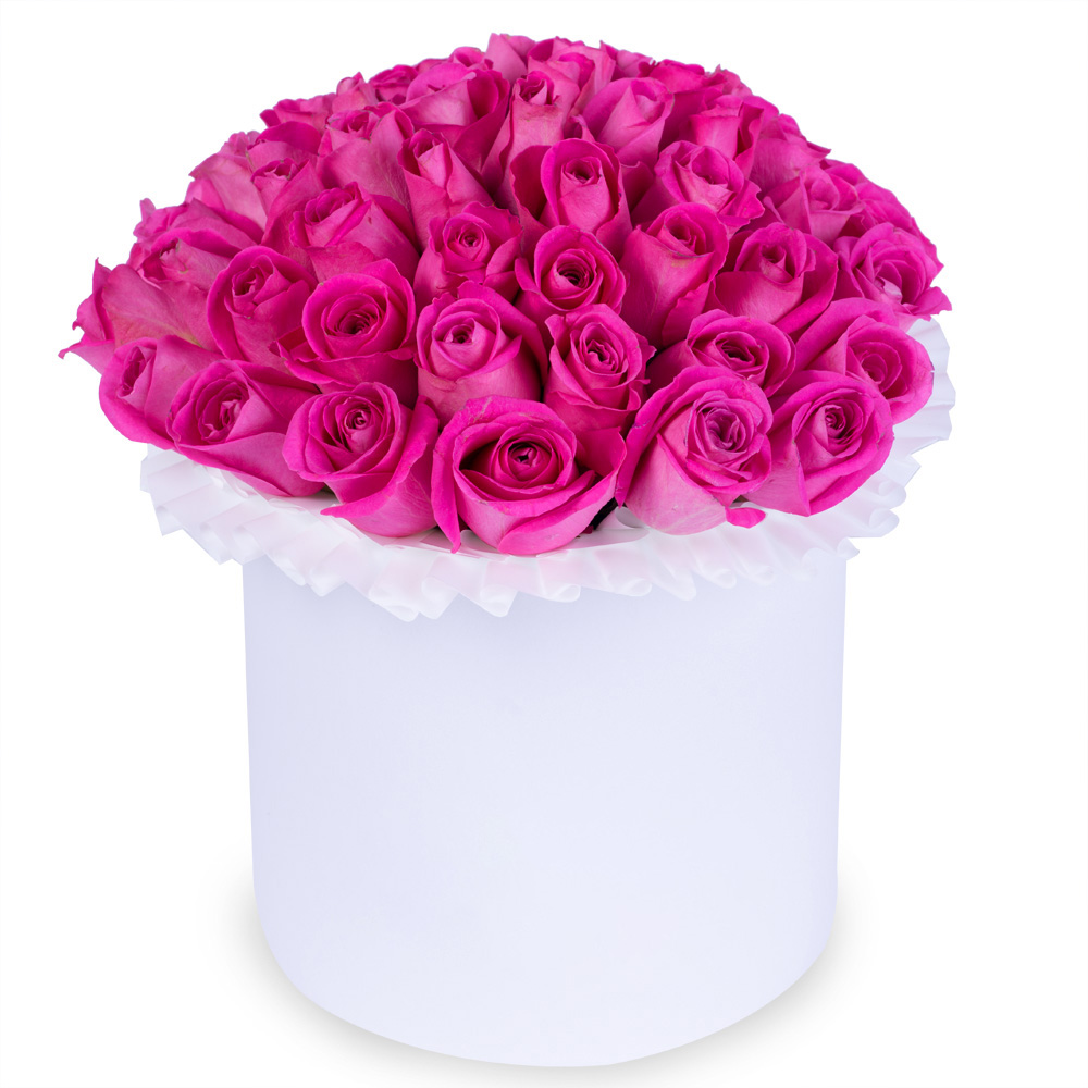 Букет из 35 розовых роз в белой шляпной коробке