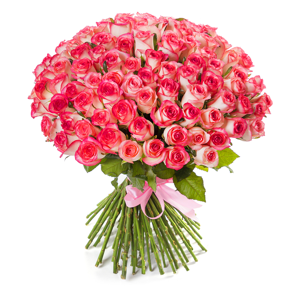 Букет 101 бело-малиновая роза premium 60 см