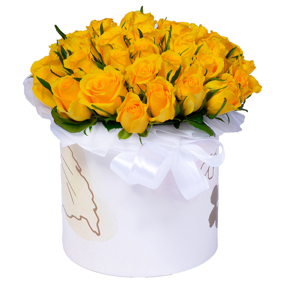 Букет из 35 желтых роз в коробке на День матери