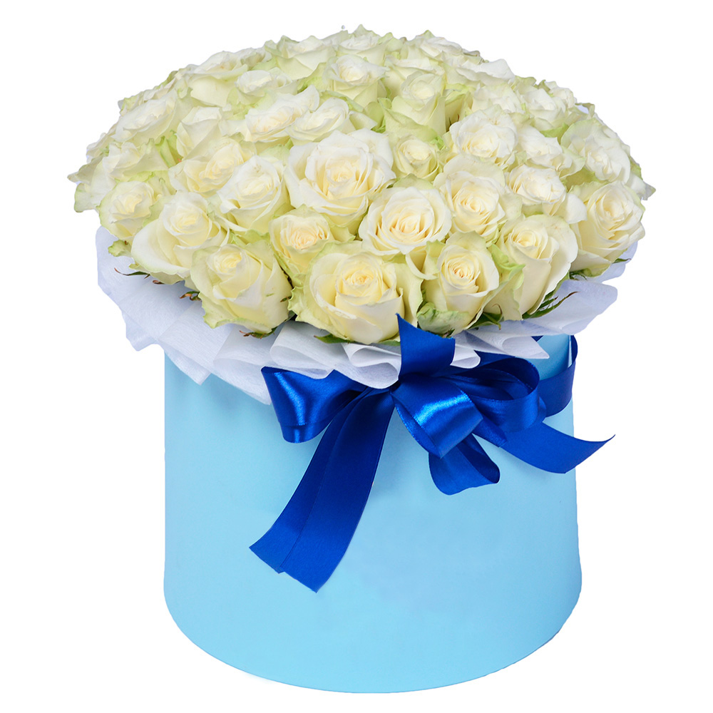 Букет из 51 белой розы в шляпной коробке