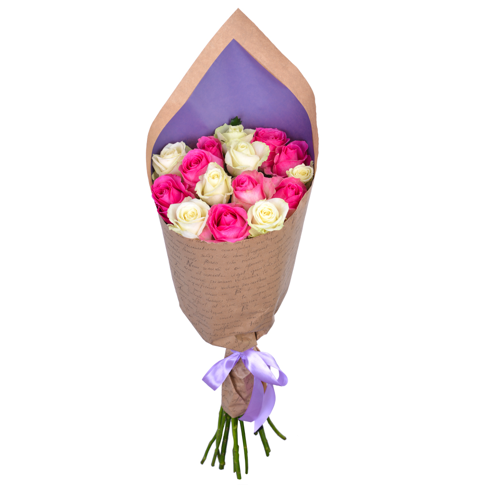 Букет из 15 белых и розовых роз 60 см