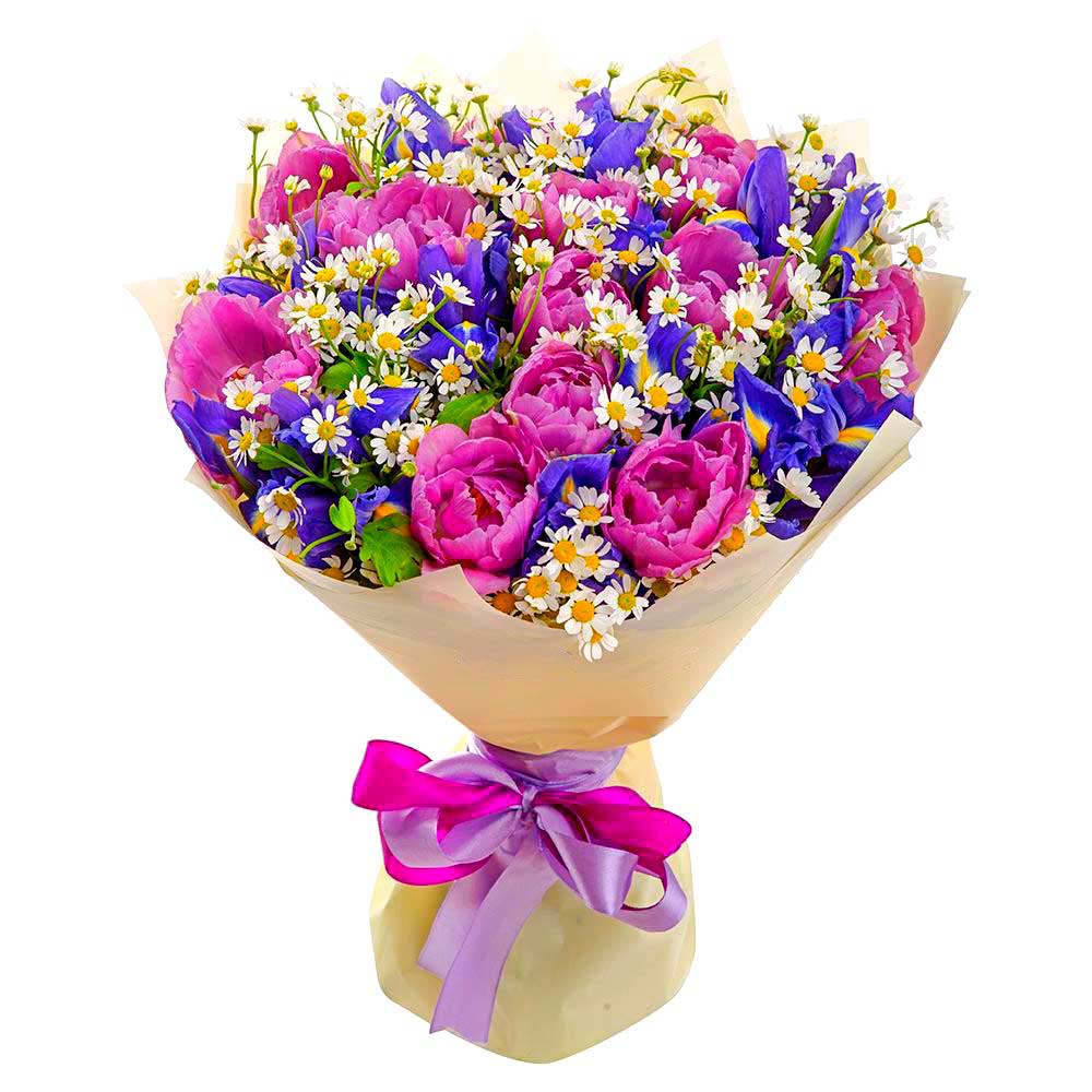 Букет из ирисов и тюльпанов