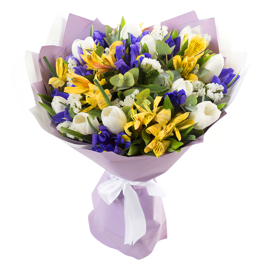 Букет из тюльпанов, альстромерий и ириса