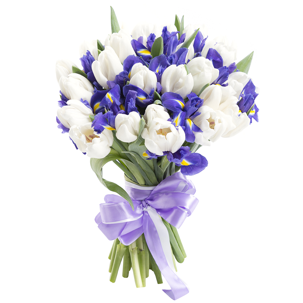 25 белых тюльпанов с ирисом