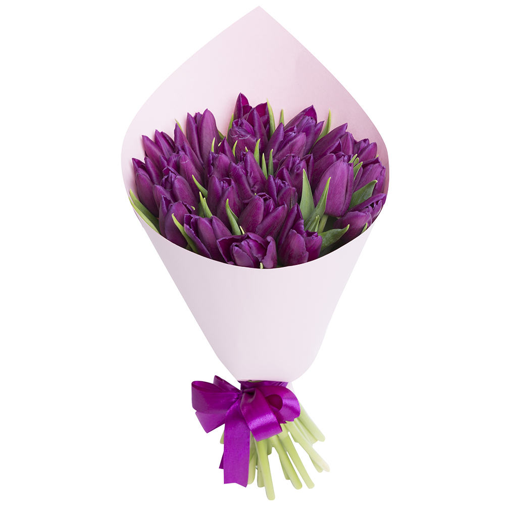 25 сиреневых тюльпанов в крафте